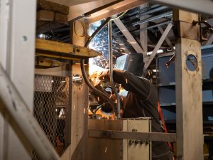 The new system upgrade includes repurposing metal for the framing and tearing old drive systems out of existing conveyors and replacing them with modern, faster powered rollers that get rid of the chain-and-sprocket style conveyor.