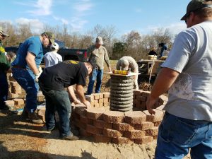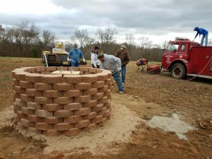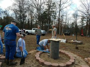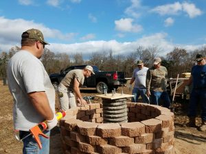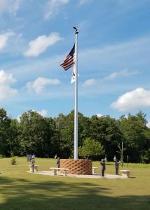 A: My husband didn’t want a military funeral. He wanted his ashes scattered on a piece of property that we owned, his family farm. And so we made a decision to build a planter to put his ashes in, and we have a 30-foot flagpole to hang his the U.S. flag and his military Airborne flag. I wasn’t really quite sure how I was going to build it. So I got out there and had drilled the hole and everything to make a concrete base for the flagpole. A handful of millwrights showed up on my property, and they helped me lift and seat that flagpole and concrete it in. And they built the planter that went around it. And then some of them came by over time. We put pavers on the ground and built a seating area with benches and the army statues at north, south, east, and west.